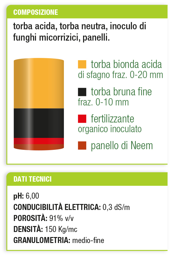 CARATTERISTICHE: terriccio di altissima qualità consentito in agricoltura biologica, arricchito con il panello di Neem* (frutto oleario di un grande albero asiatico Melia Azadirachta) il quale svolge un’azione contro gli insetti del terreno ed in parte, trasferisce questa azione all’intera pianta, proteggendola da alcuni insetti. Inoltre, il terriccio è inoculato con microrganismi naturali (trichoderma, micorrize e batteri utili della rizosfera) che migliorano l’apparato radicale e proteggono le radici da eventuali malattie fungine, rendendole più forti e attive. È composto dalle migliori torbe di sfagno (bionde e brune), e non contiene compost o altri sottoprodotti. È soffice ed odora di sottobosco. Ha un’ottima porosità pur mantenendo un’elevata ritenzione idrica. Garantisce un ottimo ed equilibrato nutrimento ed un forte attecchimento radicale.