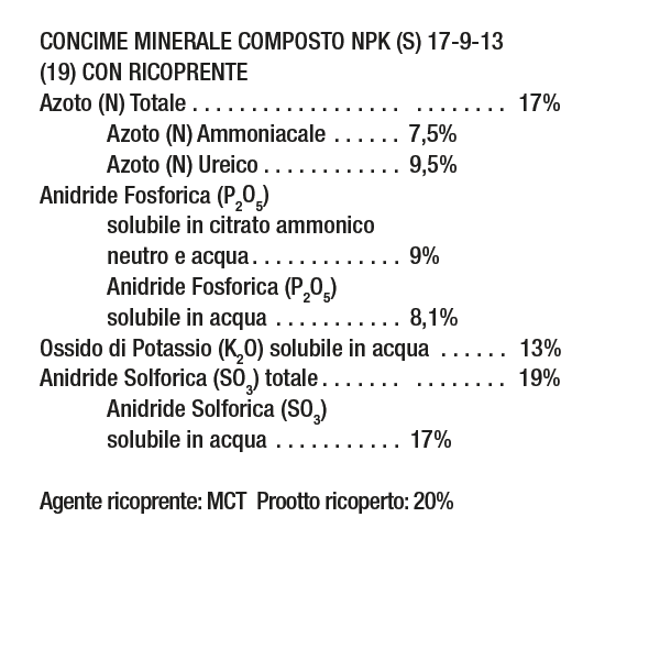 Il BLUCOTE è un concime completo di qualità, potenziato con azoto a lenta cessione, adatto per tutte le colture. Si può usare sia prima della coltura, incorporandolo al terreno, sia con la coltura in atto, lasciandolo in superficie e facendolo seguire da una leggera innaffiatura.