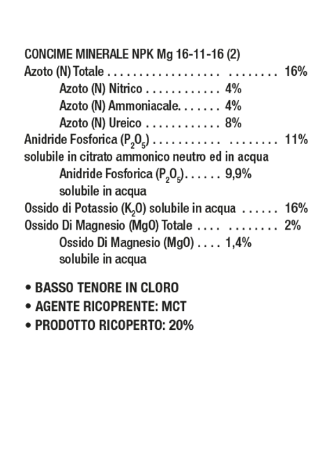 Il VIGORMULTI è un concime di alta qualità, per orti, giardini e piante da frutta. È caratterizzato da un vistoso effetto iniziale e da una cessione programmata per 3-4 mesi, per merito dei granuli rivestiti da un’apposita membrana (MCT). Conferisce alla pianta forza, colore ed una notevole resa produttiva.