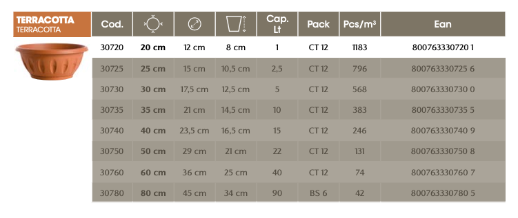 CIOTOLA "ALBA" D.30 C/SOTTOVASO TERRACOTTA (C. 30730)