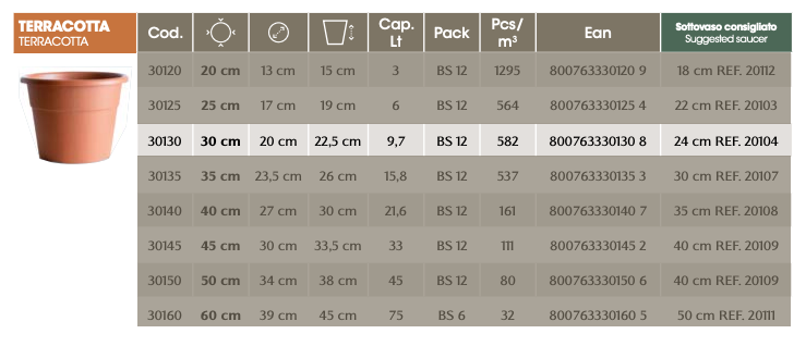 CIOTOLA "ALBA" D.30 C/SOTTOVASO TERRACOTTA (C. 30730)