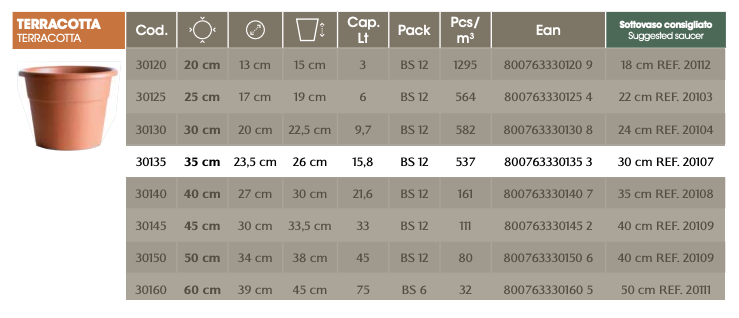 VASO "HEDERA" - DIAMETRO 35 - TERRACOTTA (C. 30135)