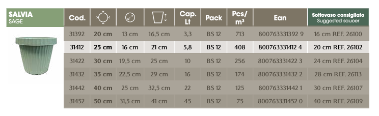 VASO ONDA - DIAMETRO 25 - SALVIA (C. 31412)