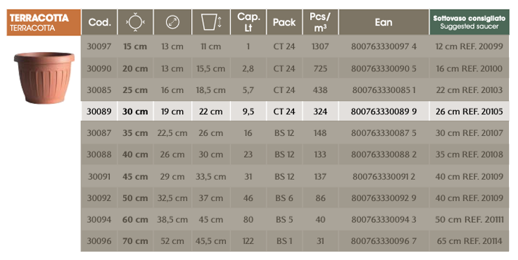 CIOTOLA "ALBA" D.30 C/SOTTOVASO TERRACOTTA (C. 30730)