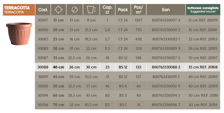 VASO "TERRA" DIAMETRO 40 TERRACOTTA (C. 30088)
