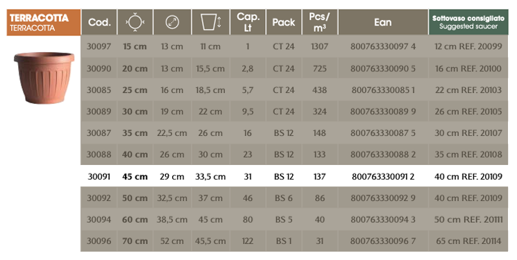 VASO "TERRA" DIAMETRO 45 TERRACOTTA (C. 30091)