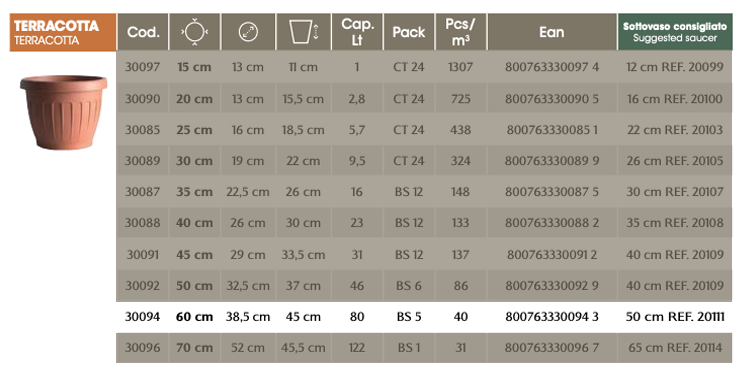 CIOTOLA "ALBA" D.30 C/SOTTOVASO TERRACOTTA (C. 30730)