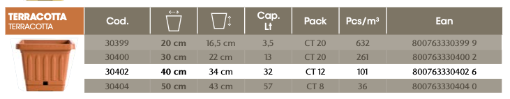 VASO "TERRA" QUADRATO 40X40 TERRACOTTA (C. 30402)