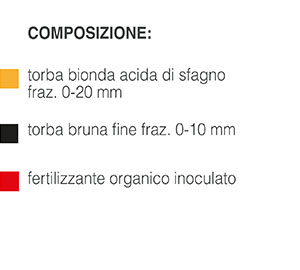 terriccio di altissima qualità consentito in agricoltura biologica, inoculato con microrganismi naturali (trichoderma, micorrize e batteri utili della rizosfera) che migliorano e proteggono le radici da eventuali malattie fungine, rendendole più forti e attive. È composto da una sapiente selezione di torbe di sfagno (bionde e brune), senza l’utilizzo di compost o altri sottoprodotti. È soffice ed odora di sottobosco. Ha un’ottima porosità pur mantenendo un’elevata ritenzione idrica. Garantisce un ottimo ed equilibrato nutrimento ed un forte attecchimento radicale.