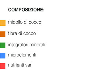 COMPONENTI: midollo di cocco, fibra di cocco, integratori minerali, microelementi, nutrienti vari.