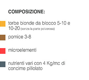 COMPONENTI: torba bionda media, pomice e 4 Kg/mc di Prontocote 12 mesi, nutrienti vari.